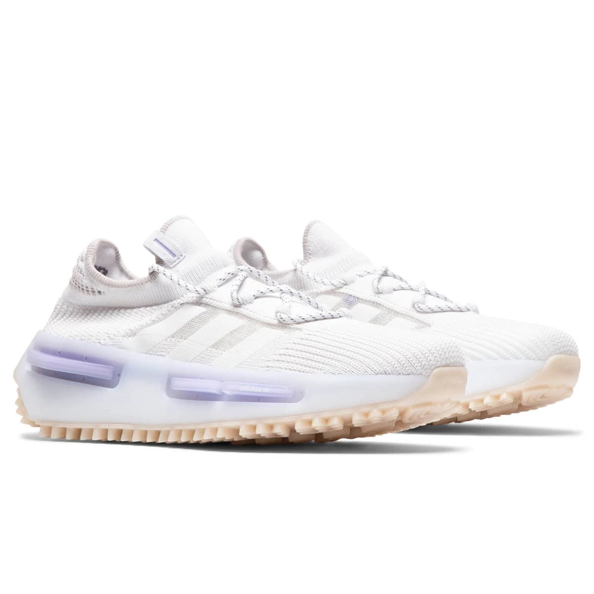 The Adidas NMD S1 sneaker designed by Nic Galways in 2021 has launched a new color combination: “Cloud White.” The NMD S1 is wrapped in a sock-like prime knit upper in white and violet shaded ensemble. The upper of the boost-enhanced midsole gradually turns into a translucent white, with a semi-transparent cream rubber outer to finish the look.