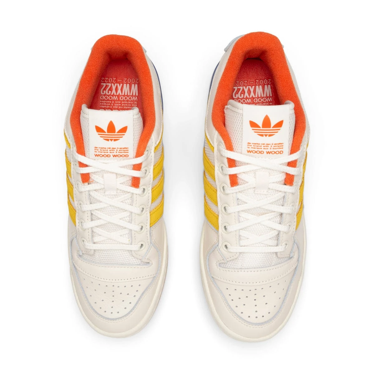 The 1984 basketball shoe has been reimagined by WOOD WOOD for their 20th anniversary. Since 2002 WOOD WOOD has been working to influence culture through creating accessible streetwear and community-driven projects. The special edition Forum Low features the WOOD WOOD logo embossed on the insole.