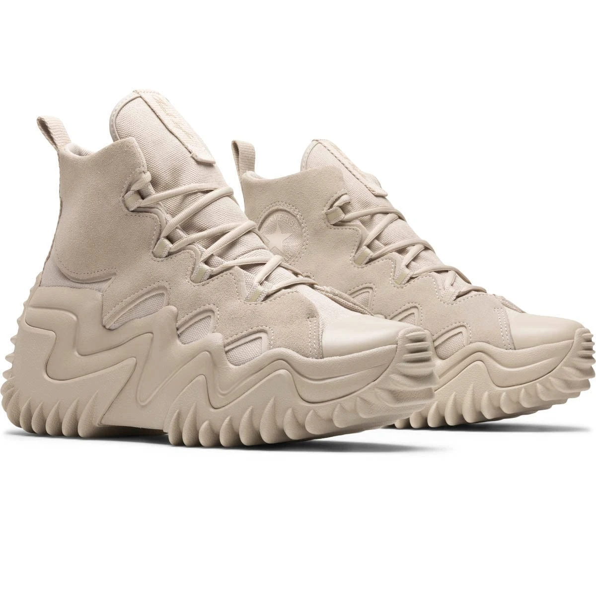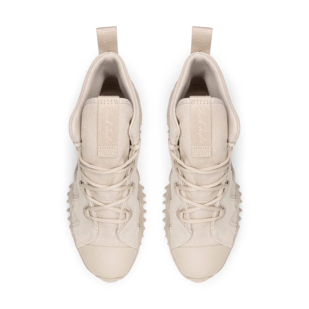 The Run Star Motion CX Hi is an exaggerated basketball leaning design that blends a mellow upper with an infectious mid and outsole sort of channels a balled up hedgehog. Done in a monochrome Beach Stone colorway, they are not grandma’s Converse and that is clearly okay.