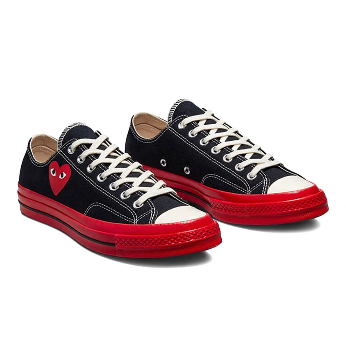CDG Play expands on their hit Converse Chuck Taylor series, this time with a Chuck Taylor Low featuring a fully visible heart logo and bold contrasting sole and heel tape to help stand out from the crowd.