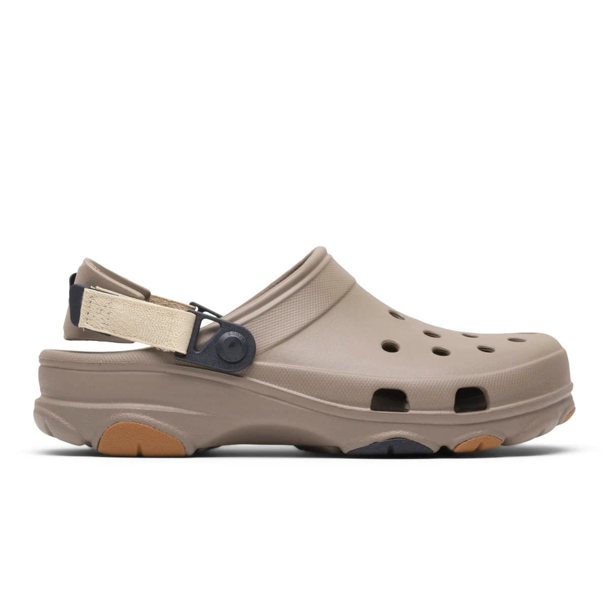 Travel. Exploration. Adventures near and far. This All-Terrain Clog, is your perfect adventure-ready companion. The rugged tread pattern and rubber pods add traction and support while the adjustable turbo strap and ventilation ports make sure this clog keeps up with an outdoorsy lifestyle. Lightweight Croslite™ foam construction makes them a practical choice for any outing. Flip that strap back and go wild.