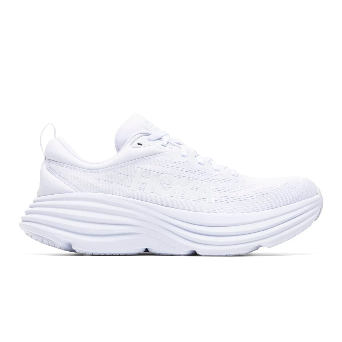 The Bondi 8 continues its dominance as a max cushion running silhouette with a lifestyle draw that is just as compelling. Featured in an all white colorway, whether your goal is to keep them pristine or unrecognizable, it all starts with the first pillow-y step.