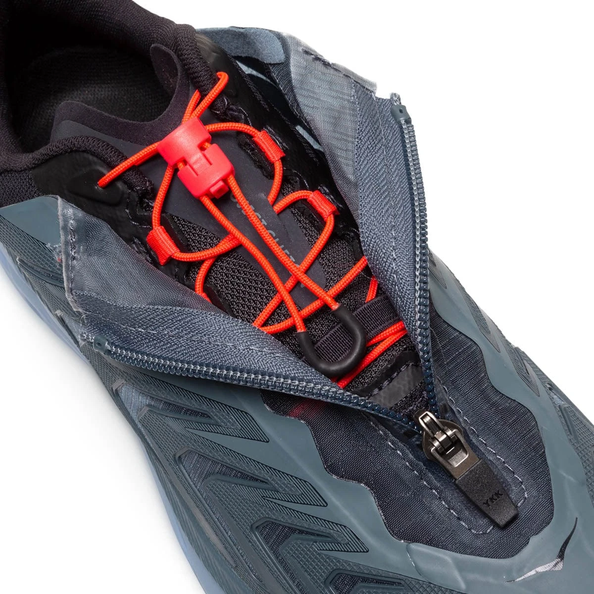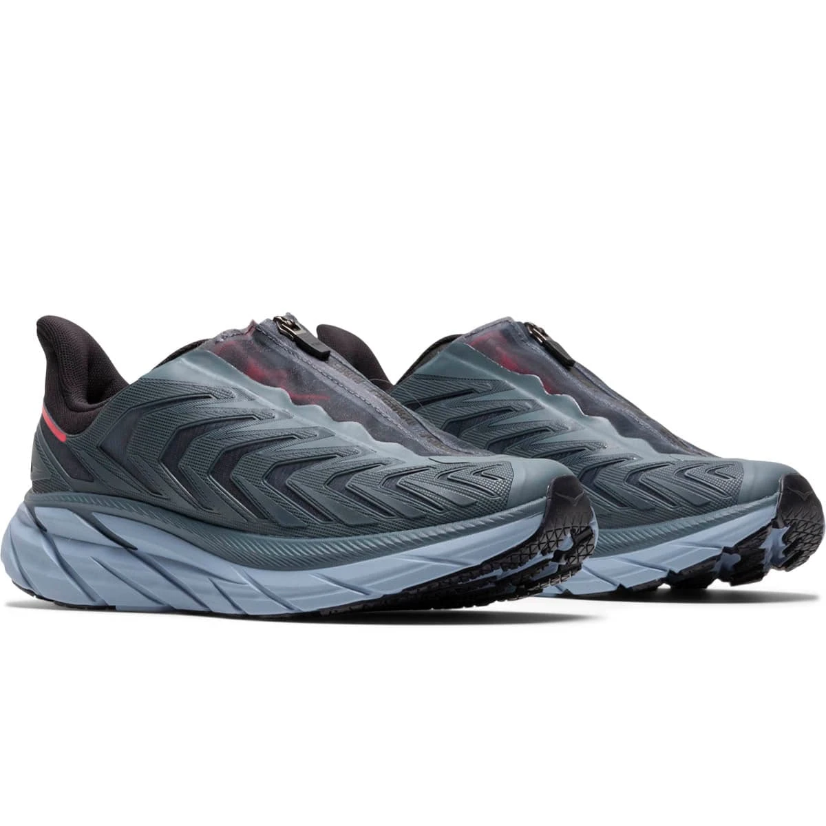 Founded in 2009, Hoka footwear defied the minimalist design dominating the running world in the most extreme possible way. The “maximalist” cushioning of Hoka footwear offered more cushioning than any other shoe, period, while maintaining an overall light weight. The exaggerated outsole required to accommodate the extra cushioning quickly became Hoka’s visual signature, something that made clear that this is a different kind of sneaker.