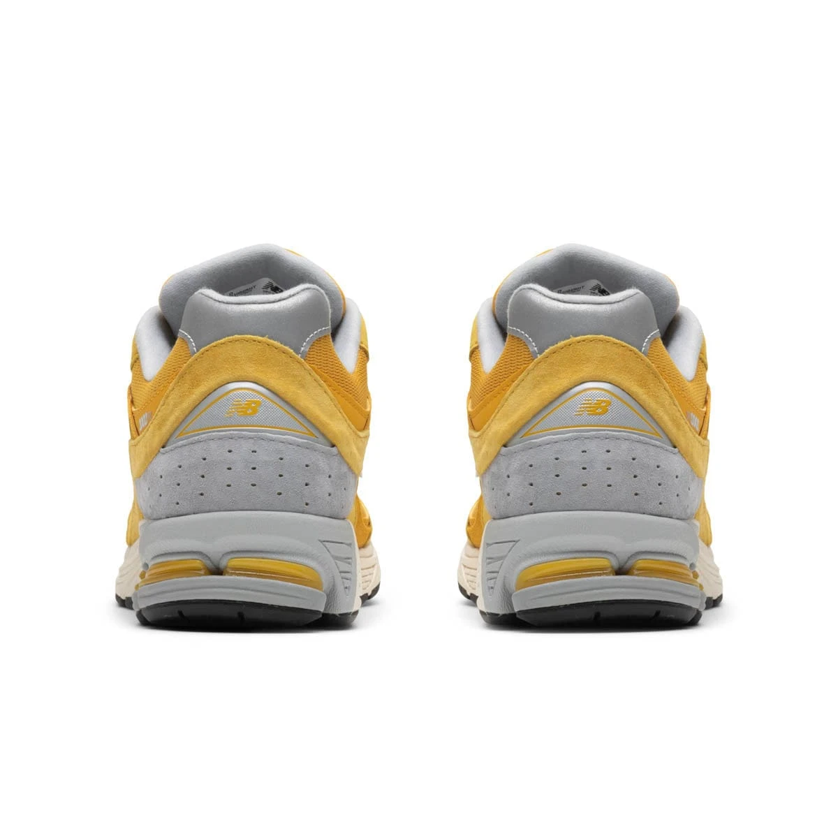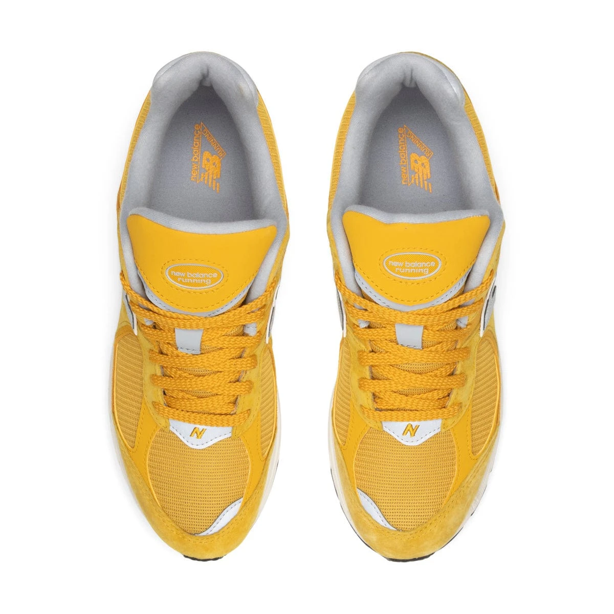 The M2002RHT featured here in a pure sunshine colorway turns a suede and mesh upper into happy feet.