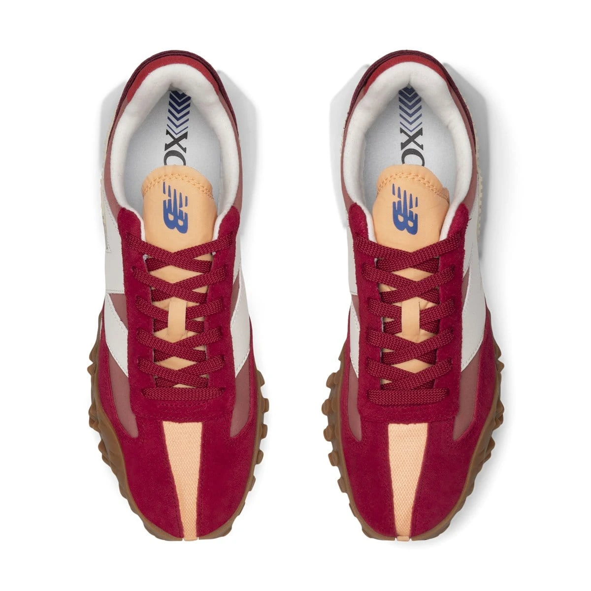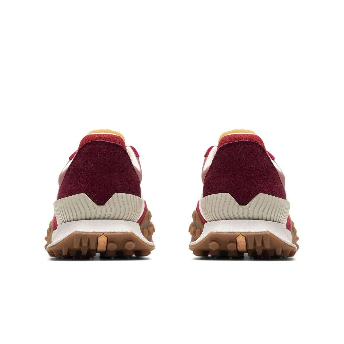 New Balance’s newest silhouette has already seen a handful of releases in the past few weeks. Based on a 1970s runner with elements of several other models appearing throughout, the sporty, mixed material design begins with a high-grade performance mesh that is covered on all sides by suede overlays of tonal red. Large white leather “N” branding appears in its traditional side paneled position, yet larger, like that of the 327. The shoe’s focal points include an exaggerated tread that wraps around from the outsole to the toebox, and an oversized midsole and outsole which extends past the heel.