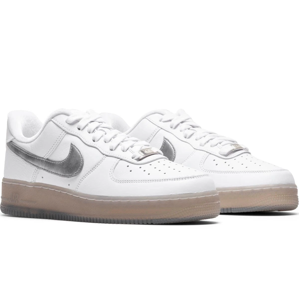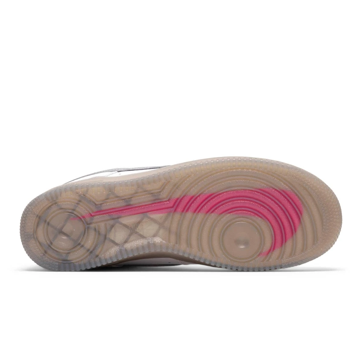 Dressed in a White, Metallic Silver, and Hyper Pink color scheme. This offering of the Nike Air Force 1 features a White leather upper paired with matching tonal branding. Metallic Silver Swooshes on the sides atop a translucent outsole revealing a Pink Swoosh underneath completes the design.