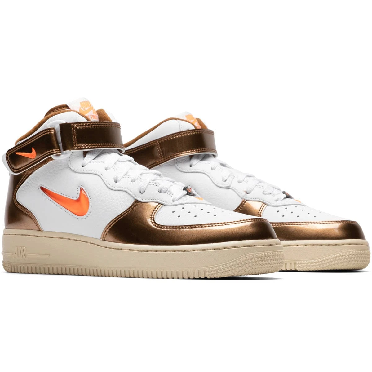 Mid-top not “mid”. The middle child in the Air Force 1 family does not get the Goldilocks level praise it deserves even though its not too high and not too low. But with color ways like this, a jeweled Nike logo, and glossy accents throughout, the tide has no choice but to shift.