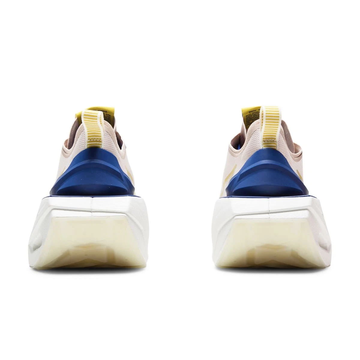A new variant of the futuristic silhouette changes things up with a bit of retro inspiration. The translucent, NextSkin upper usually sported by the Zoom X Vista Grind is swapped out for a more classic, textile upper construction, with a neutral colorway, accented by old-school royal blue and yellow to go along with it.Â