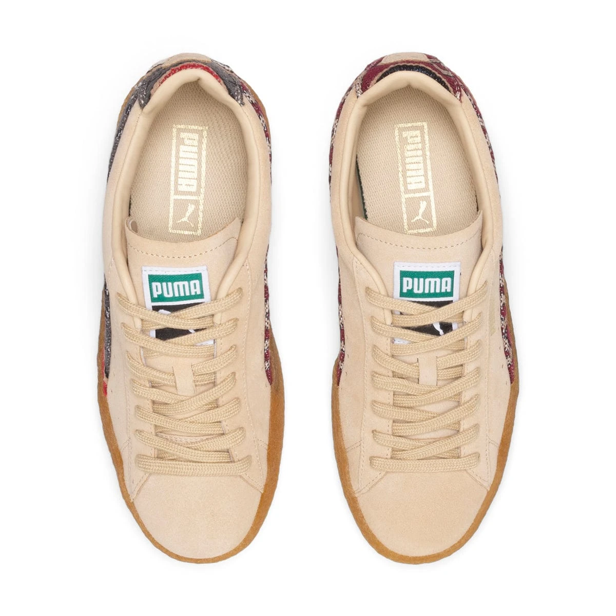 The Suede Crepe Pattern takes a buttery upper and pairs it with a springy foundation to create the PB&J of sneakers. However, it doesn’t stop there, adding woven wool details to the logos and heel tabs to complete the textural trifecta.