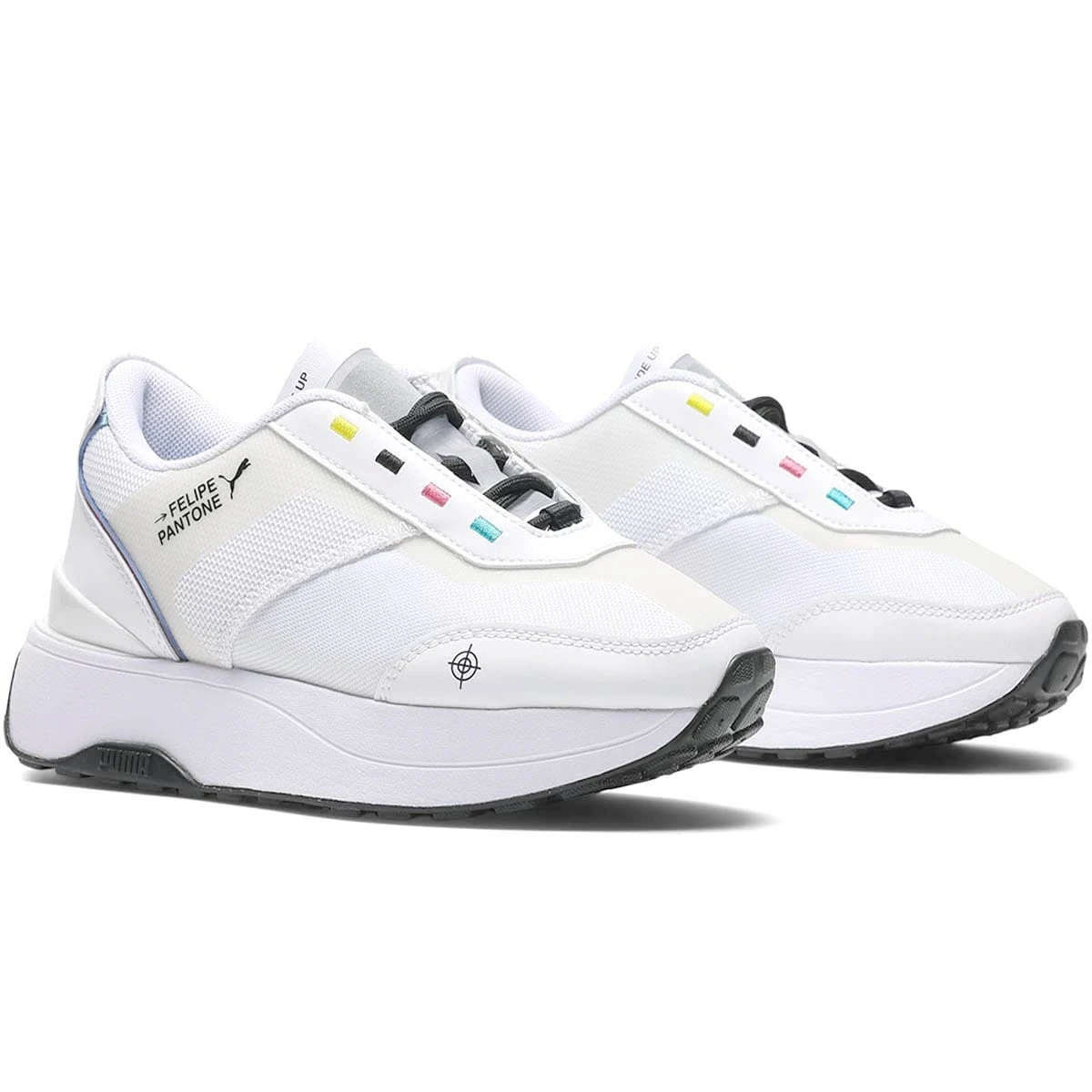 Puma teams up with Spanish/Argentinian artist Felipe Pantone. Known for his colorful gradients, geometric shapes, patterns and grids, Pantone’s work combines an analog upbringing with the ever-evolving digital future. In his recent collection with Puma, Pantone uses his signature colorful palette on tees and futbol jerseys and the Women’s Cruise Rider, while his iteration of the Mirage Mox and complementing shorts take on a darker and more subtle design where the intrigue lies deeper in the details.Â