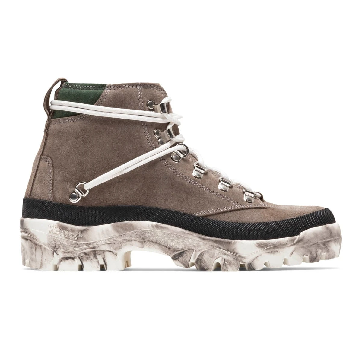 The Wilson Boot in Vintage Ash Greeb Suede takes hiking boots back to their hay day when form met function squarely in the center of your compass rose. Idle for traversing obstacles both natural and man-made, lace-em up, wrap ’em around the collar and go!
