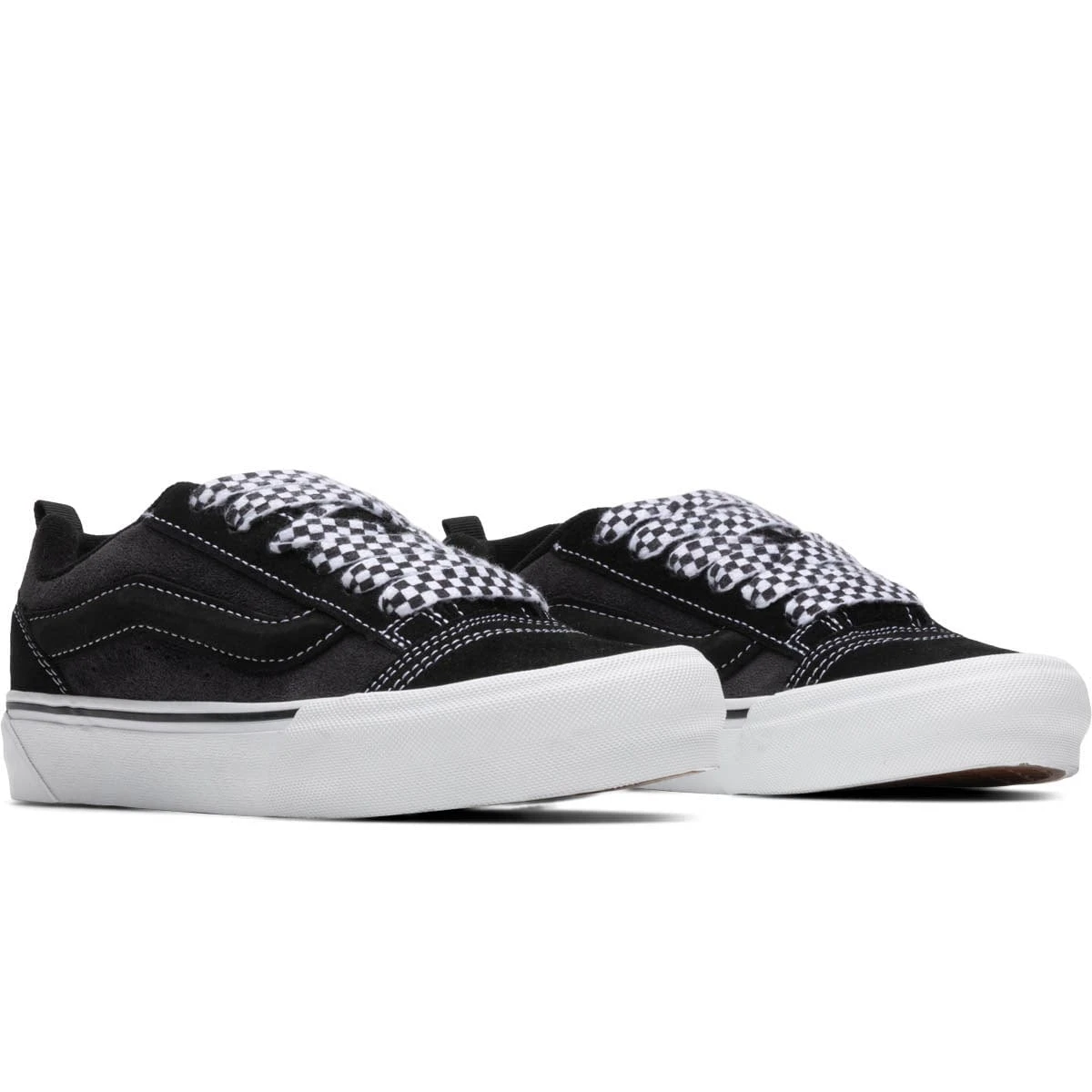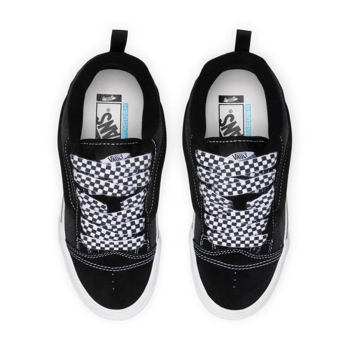 The Knu Skool is a reissued model from the 90s, when skate shoes were extra puffy. Made with sturdy suede uppers, this low top silhouette features a big puffy tongue and ankle collar, giving it an exaggerated look that plays off of the original Old Skool. Keeping the “Off The Wall” aesthetic, our iconic Vans Sidestripe™ has been re-envisioned as a puffy diamond 3D mold, adding to the overall chunky look and feel.