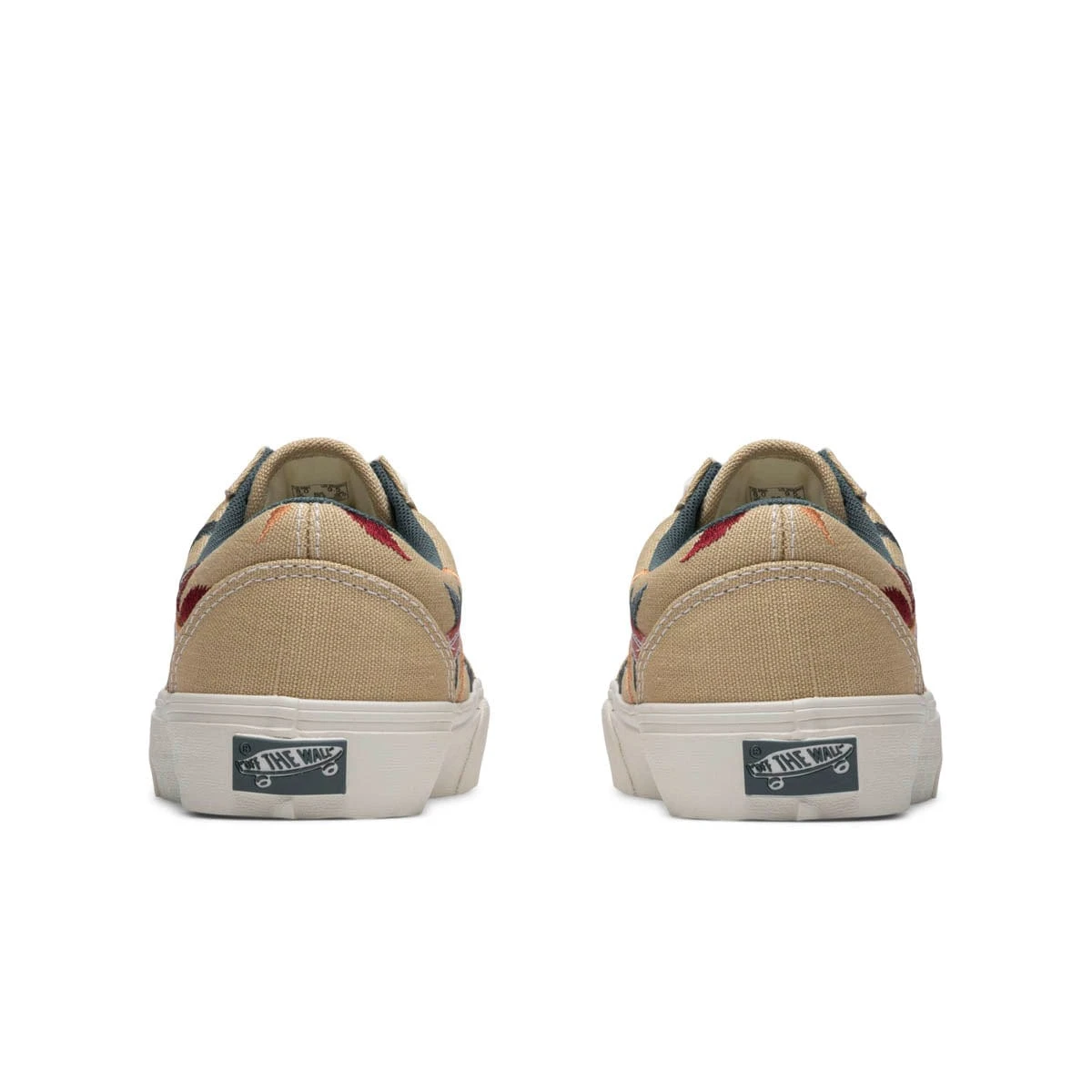 Back in 1977, the Old Skool was the first Vans skate model to incorporate leather paneling. Here, the Old Skool opts for a a hemp upper with a super cool all-over 7 leaf flower design . Not sure what flower they are supposed to be but they sure look cool all colorfully embroidered like that.