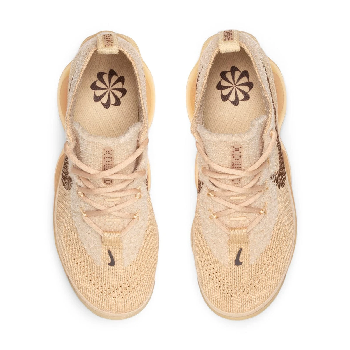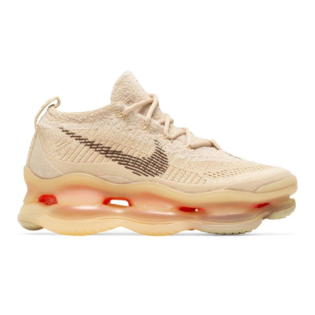 The Nike Air Max Scorpion ‘Sesame’ delivers a neutral colorway of a lifestyle runner built with ‘point-loaded’ cushioning. A golden tan finish is executed on the Flyknit chenille upper, made in part with recycled materials and accented with an embroidered Swoosh. Laces feed through interior cables for a lockdown fit, while a pull tab at the heel provides easy on and off. The sneaker rides on an exaggerated midsole made up of pressure-graded Nike Air units, offering enhanced responsiveness and a dynamic ride.